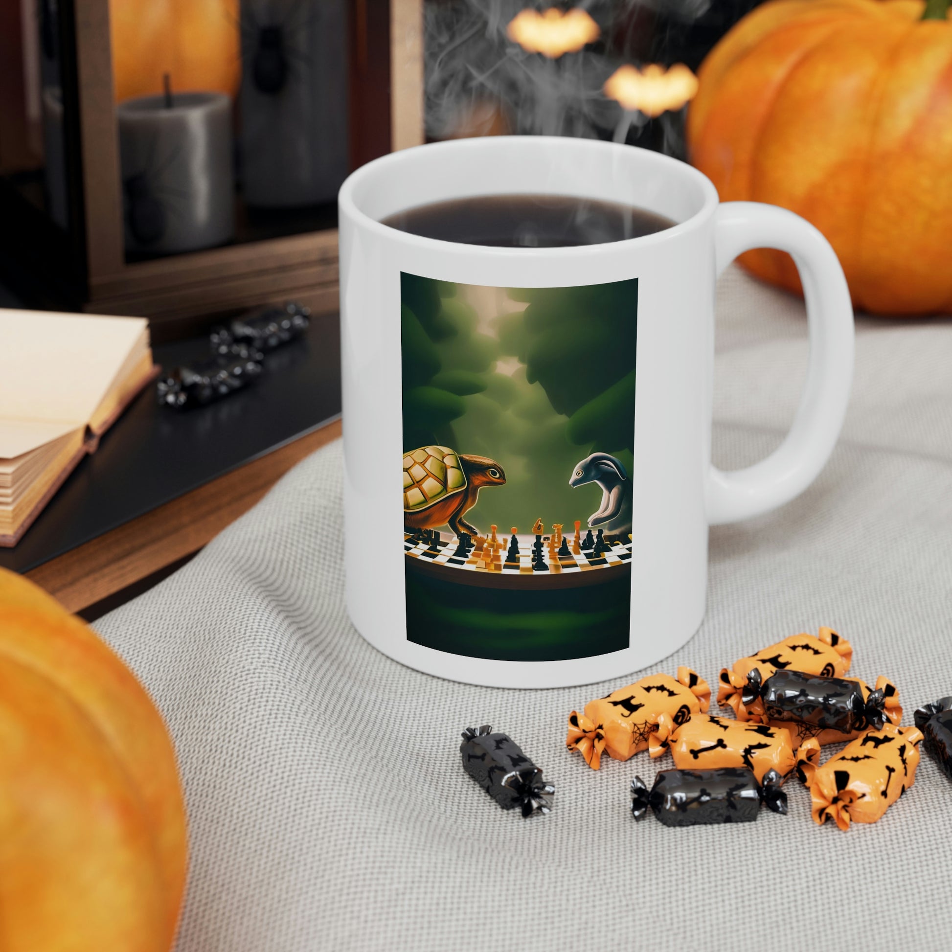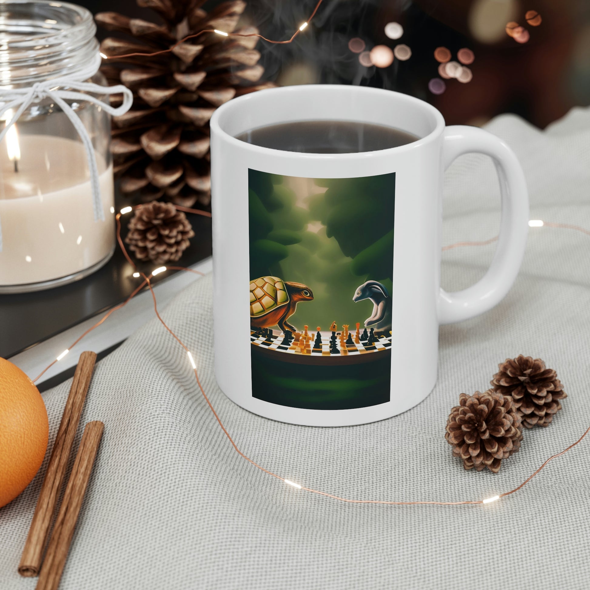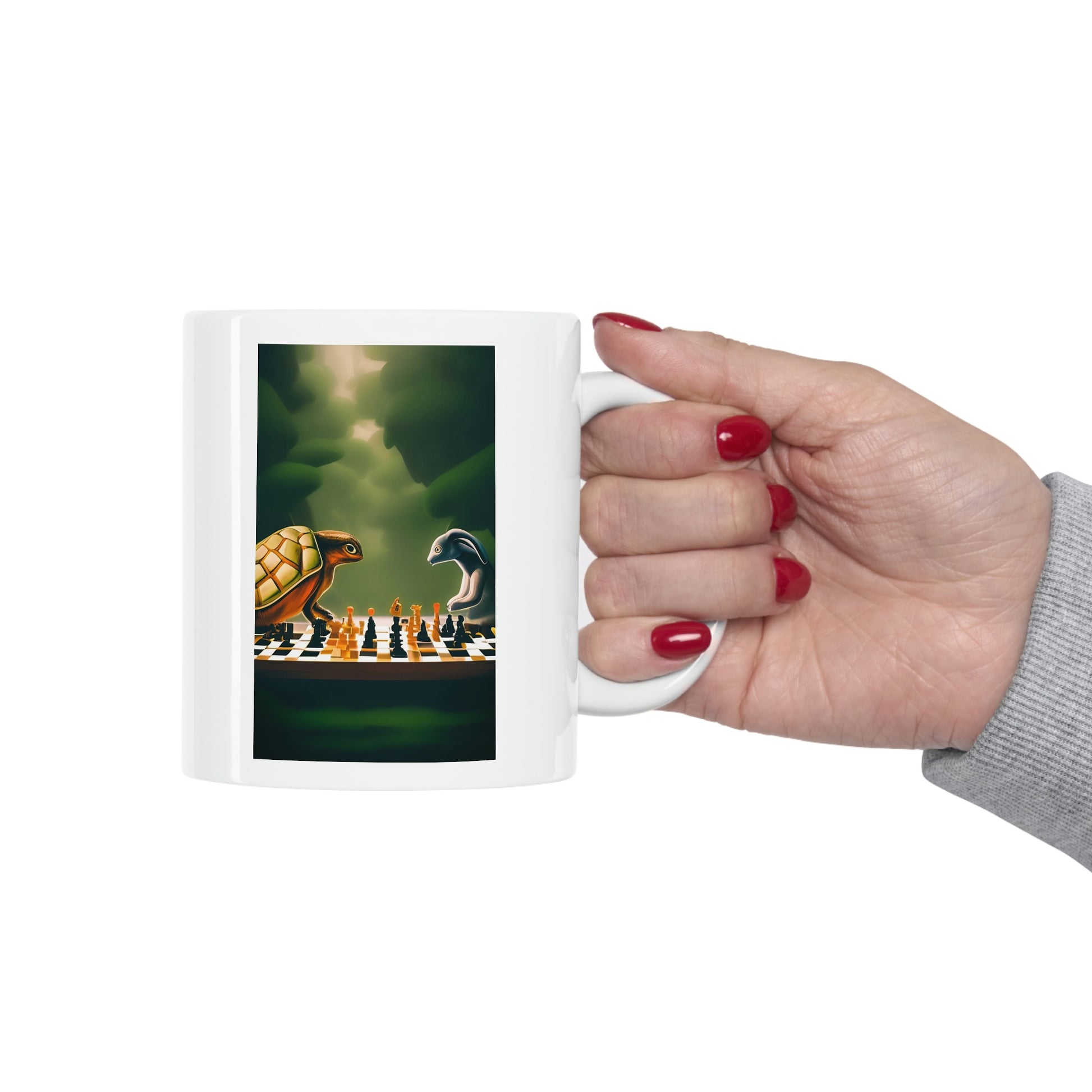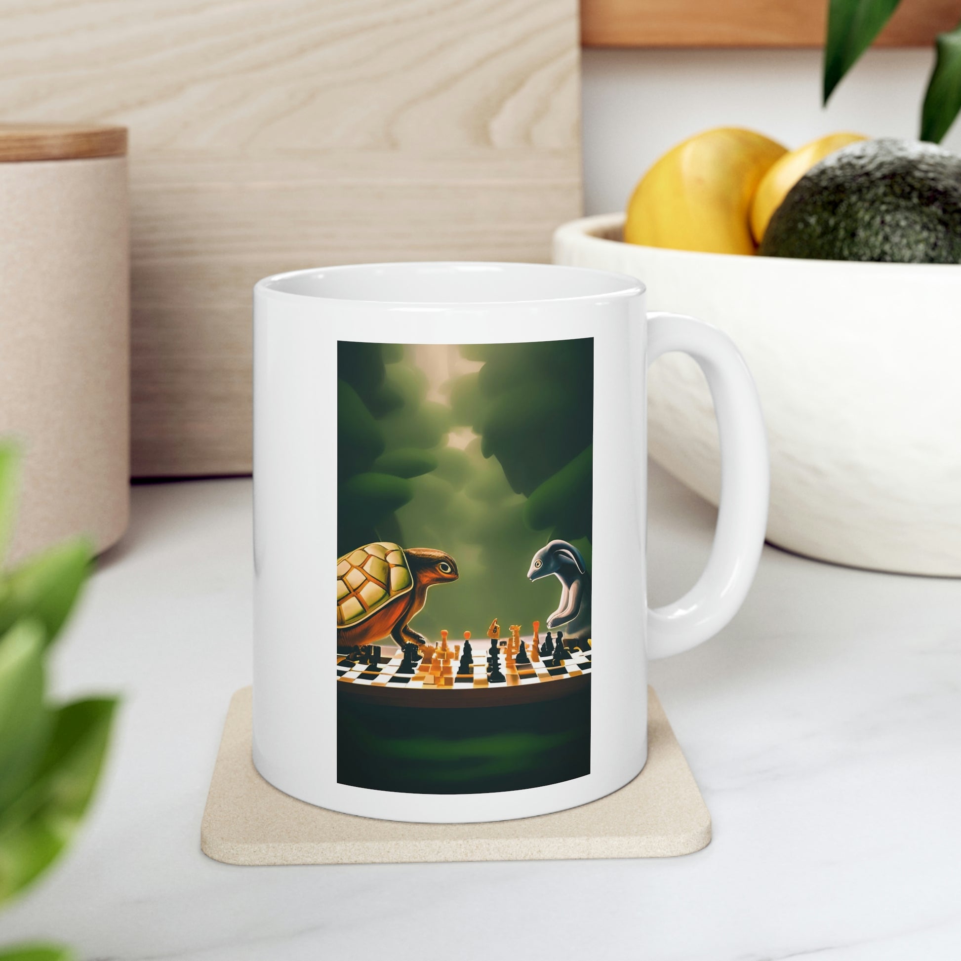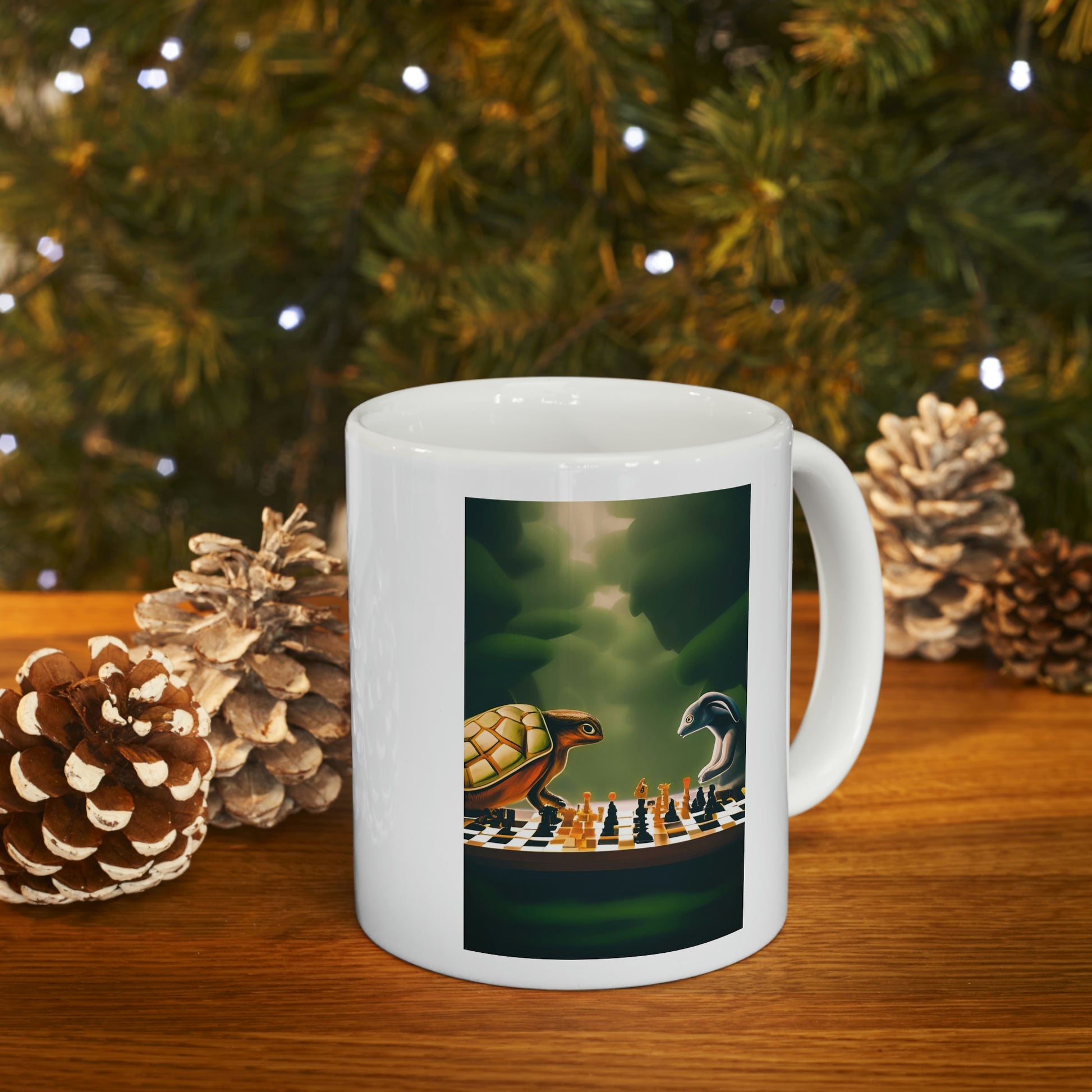 "Tortoise and Hare Playing Chess" Ceramic Mug 11oz